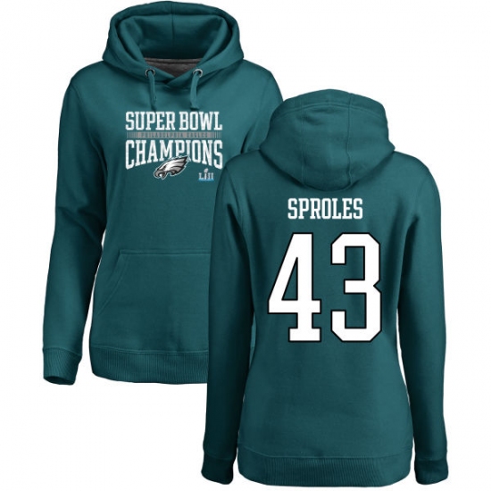 Women's Nike Philadelphia Eagles #43 Darren Sproles Green Super Bowl LII Champions Pullover Hoodie