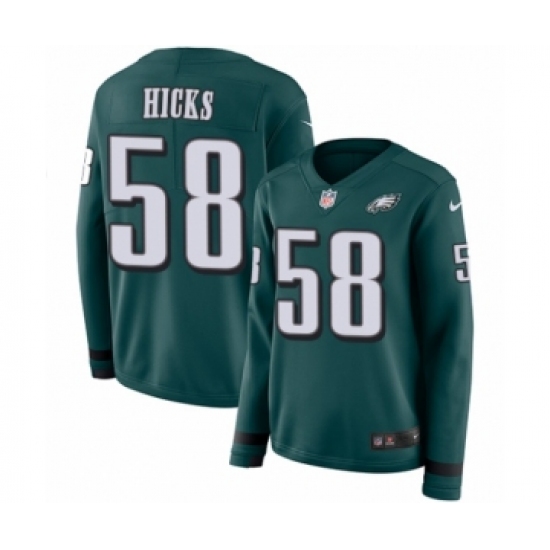 >Women's Nike Philadelphia Eagles #58 Jordan Hicks Limited Green Therma Long Sleeve NFL Jersey