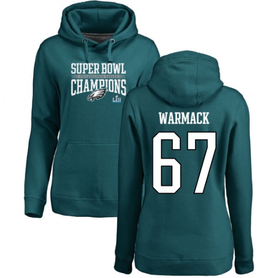 Women's Nike Philadelphia Eagles #67 Chance Warmack Green Super Bowl LII Champions Pullover Hoodie
