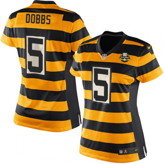 Home>NFL>Pittsburgh Steelers>Joshua Dobbs>Women's Nike Pittsburgh Steelers #5 Joshua Dobbs Limited Yellow/Black Alternate 80TH Anniversary Throwback NFL Jersey