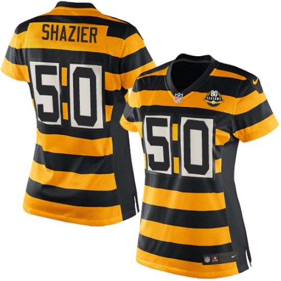 Home>NFL>Pittsburgh Steelers>Ryan Shazier>Women's Nike Pittsburgh Steelers #50 Ryan Shazier Limited Yellow/Black Alternate 80TH Anniversary Throwback NFL Jersey