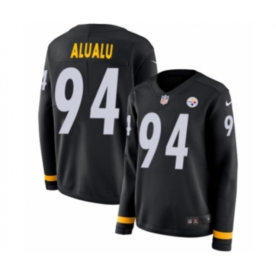 Women's Nike Pittsburgh Steelers #94 Tyson Alualu Limited Black Therma Long Sleeve NFL Jersey
