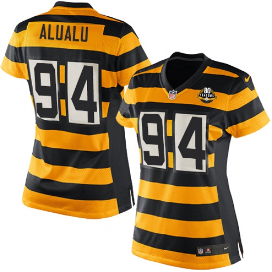 Women's Nike Pittsburgh Steelers #94 Tyson Alualu Limited Yellow/Black Alternate 80TH Anniversary Throwback NFL Jersey