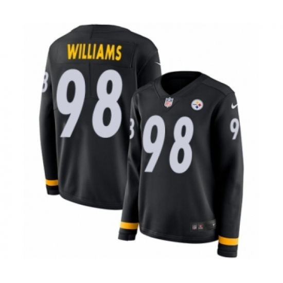 >Women's Nike Pittsburgh Steelers #98 Vince Williams Limited Black Therma Long Sleeve NFL Jersey