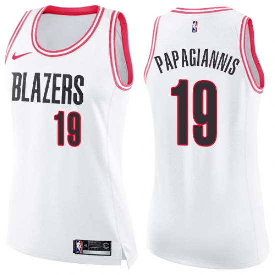 Women's Nike Portland Trail Blazers #19 Georgios Papagiannis Swingman White Pink Fashion NBA Jersey
