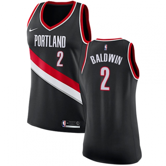 Women's Nike Portland Trail Blazers #2 Wade Baldwin Authentic Black NBA Jersey - Icon Edition