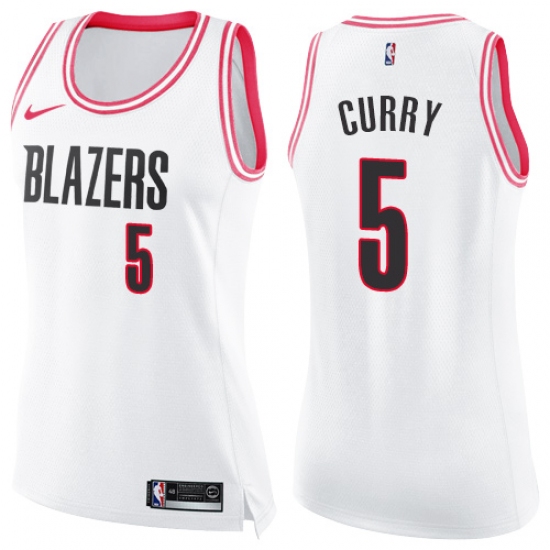 Women's Nike Portland Trail Blazers #5 Seth Curry Swingman White Pink Fashion NBA Jersey