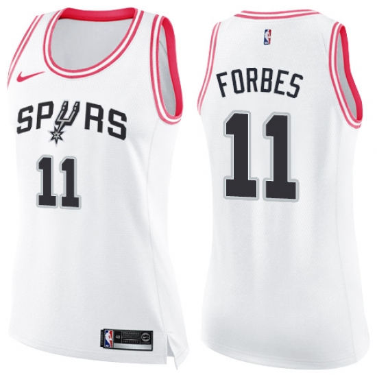 Women's Nike San Antonio Spurs #11 Bryn Forbes Swingman White Pink Fashion NBA Jersey