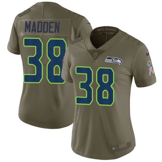 Home>NFL>Seattle Seahawks>Tre Madden>Women's Nike Seattle Seahawks #38 Tre Madden Limited Olive 2017 Salute to Service NFL Jersey