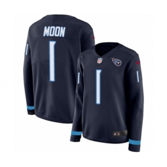 Women's Nike Tennessee Titans #1 Warren Moon Limited Navy Blue Therma Long Sleeve NFL Jersey
