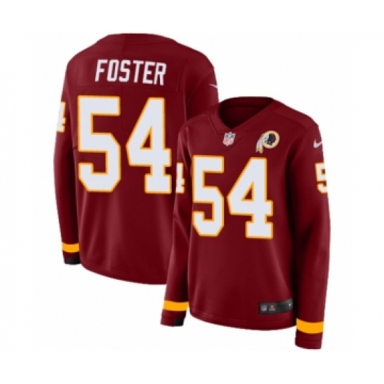 >Women's Nike Washington Redskins #54 Mason Foster Limited Burgundy Therma Long Sleeve NFL Jersey