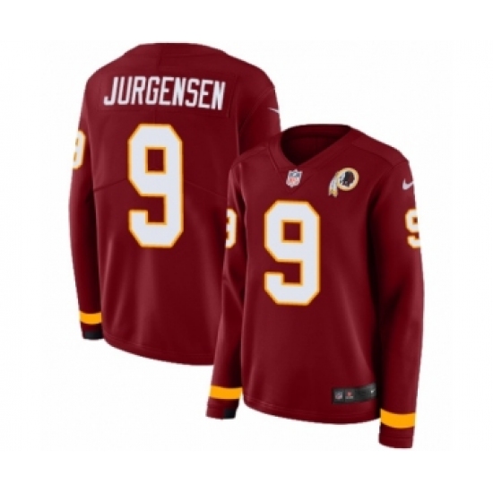 >Women's Nike Washington Redskins #9 Sonny Jurgensen Limited Burgundy Therma Long Sleeve NFL Jersey