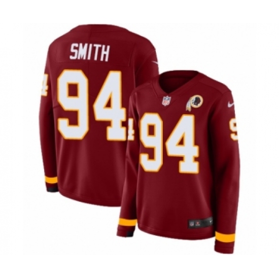 Women's Nike Washington Redskins #94 Preston Smith Limited Burgundy Therma Long Sleeve NFL Jersey