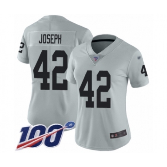 >Women's Oakland Raiders #42 Karl Joseph Limited Silver Inverted Legend 100th Season Football Jersey
