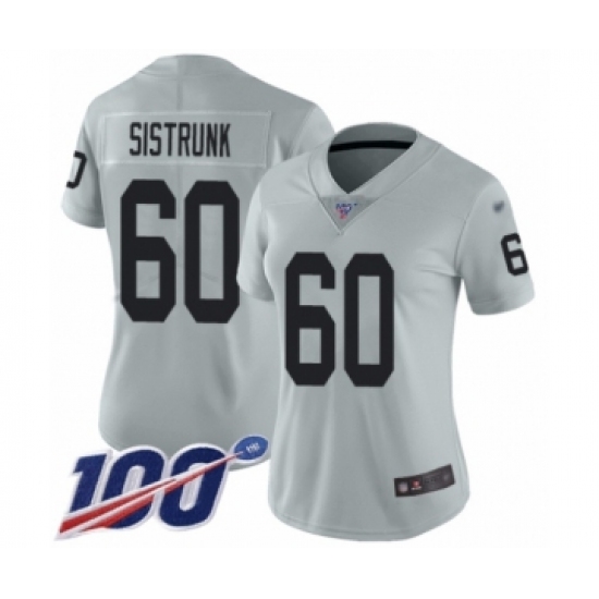 >Women's Oakland Raiders #60 Otis Sistrunk Limited Silver Inverted Legend 100th Season Football Jersey