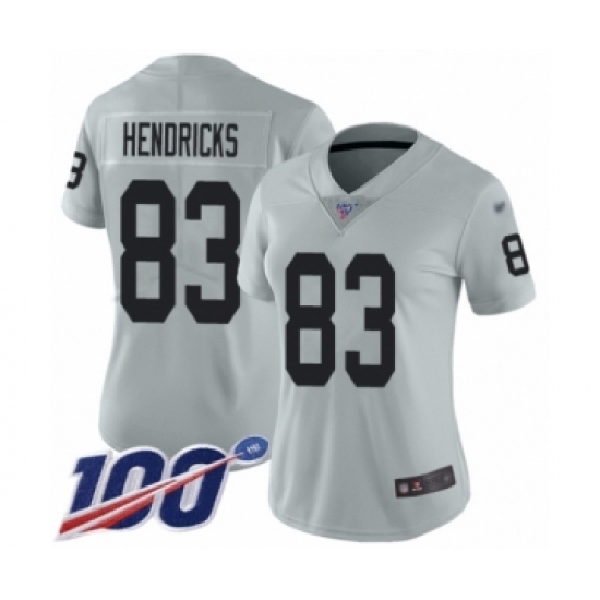 >Women's Oakland Raiders #83 Ted Hendricks Limited Silver Inverted Legend 100th Season Football Jersey