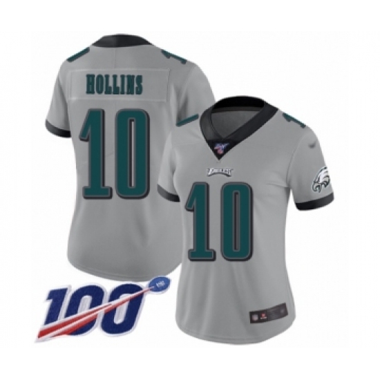 >Women's Philadelphia Eagles #10 Mack Hollins Limited Silver Inverted Legend 100th Season Football Jersey