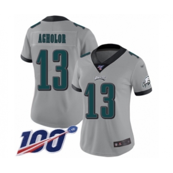Women's Philadelphia Eagles #13 Nelson Agholor Limited Silver Inverted Legend 100th Season Football Jersey
