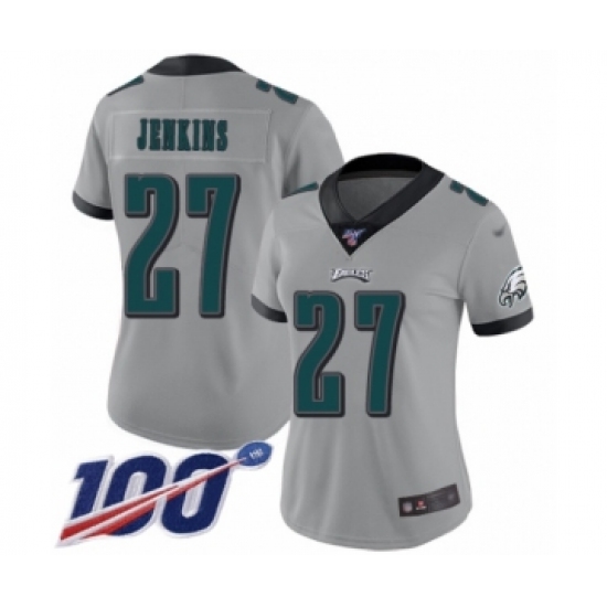 Women's Philadelphia Eagles #27 Malcolm Jenkins Limited Silver Inverted Legend 100th Season Football Jersey