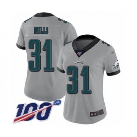 >Women's Philadelphia Eagles #31 Jalen Mills Limited Silver Inverted Legend 100th Season Football Jersey