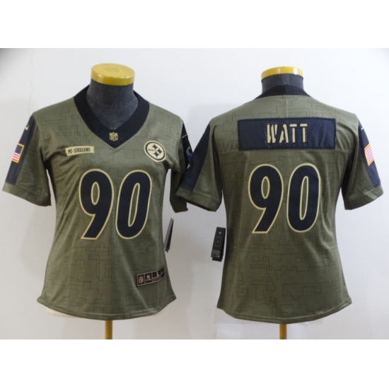 >Women's Pittsburgh Steelers #90 T. J. Watt Nike Olive 2021 Salute To Service Limited Player Jersey