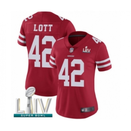 >Women's San Francisco 49ers #42 Ronnie Lott Red Team Color Vapor Untouchable Limited Player Super Bowl LIV Bound Football Jersey