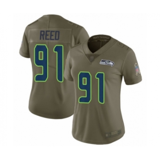 Women's Seattle Seahawks #91 Jarran Reed Limited Olive 2017 Salute to Service Football Jersey