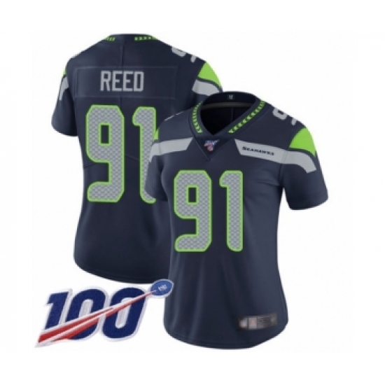 Women's Seattle Seahawks #91 Jarran Reed Navy Blue Team Color Vapor Untouchable Limited Player 100th Season Football Jersey