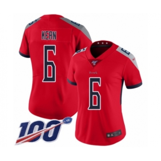 >Women's Tennessee Titans #6 Brett Kern Limited Red Inverted Legend 100th Season Football Jersey