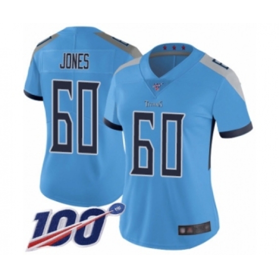 Women's Tennessee Titans #60 Ben Jones Light Blue Alternate Vapor Untouchable Limited Player 100th Season Football Jersey