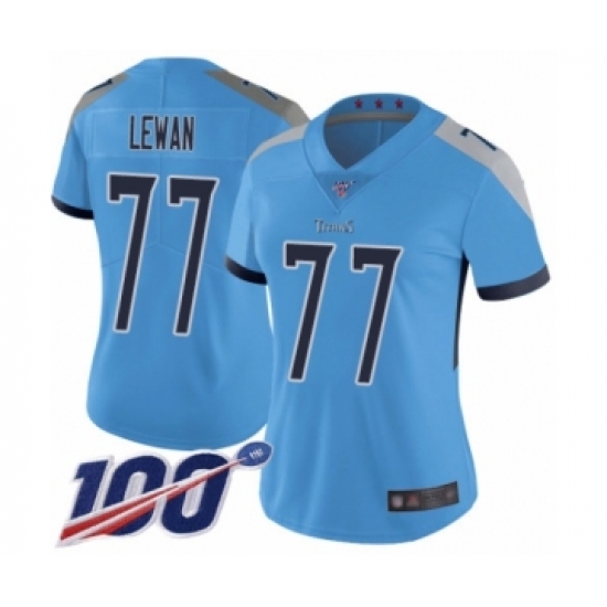 Women's Tennessee Titans #77 Taylor Lewan Light Blue Alternate Vapor Untouchable Limited Player 100th Season Football Jersey