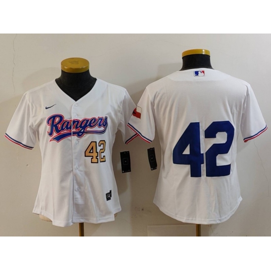 >Women's Texas Rangers #42 Jackie Robinson White Cool Base Stitched Baseball Jerseys