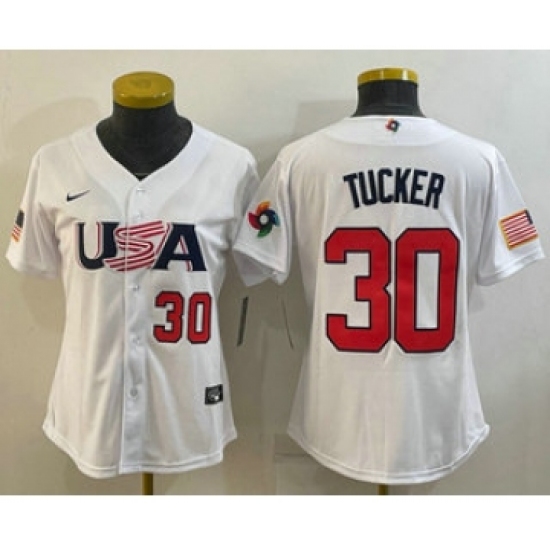 Women's USA Baseball #30 Kyle Tucker Number 2023 White World Classic Stitched Jerseys