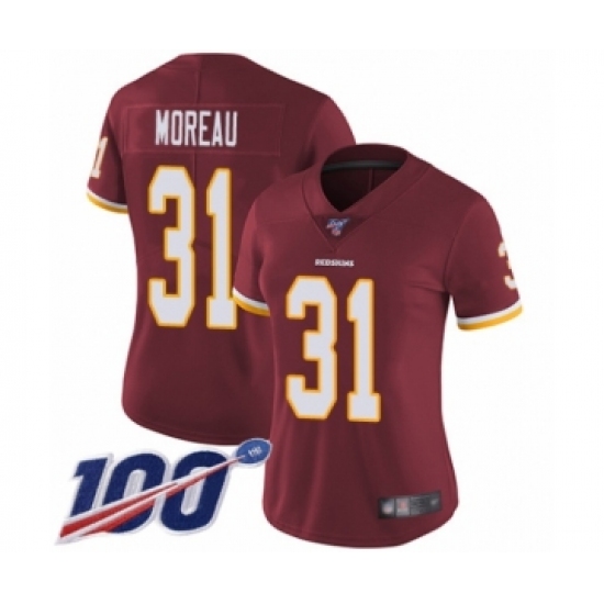 >Women's Washington Redskins #31 Fabian Moreau Burgundy Red Team Color Vapor Untouchable Limited Player 100th Season Football Jersey