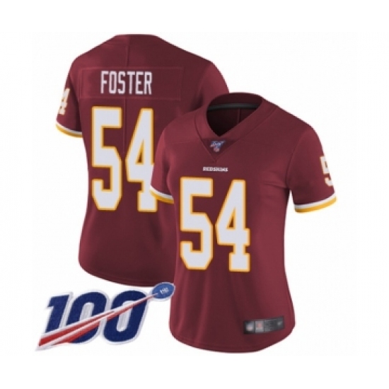 >Women's Washington Redskins #54 Mason Foster Burgundy Red Team Color Vapor Untouchable Limited Player 100th Season Football Jersey