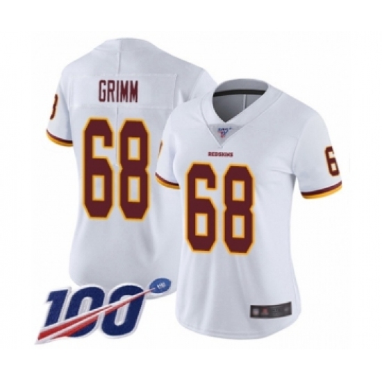 >Women's Washington Redskins #68 Russ Grimm White Vapor Untouchable Limited Player 100th Season Football Jersey
