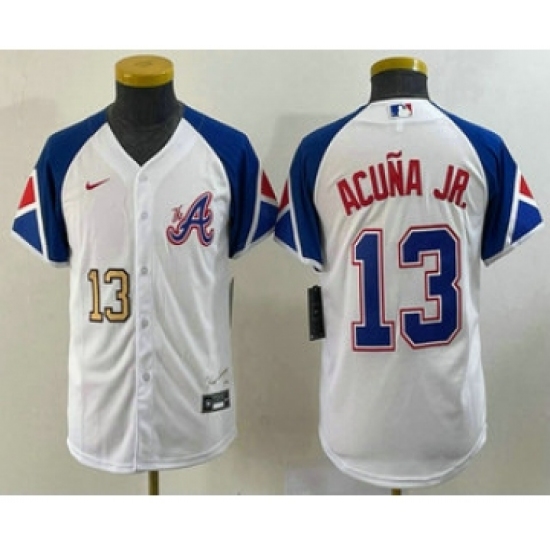 Youth Atlanta Braves #13 Ronald Acuna Jr White 2023 City Connect Cool Base Stitched Jersey