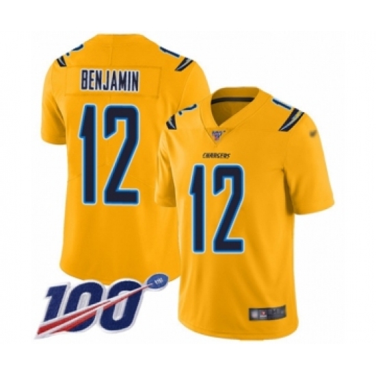 >Youth Los Angeles Chargers #12 Travis Benjamin Limited Gold Inverted Legend 100th Season Football Jersey
