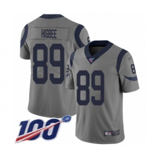 Youth Los Angeles Rams #89 Tyler Higbee Limited Gray Inverted Legend 100th Season Football Jersey