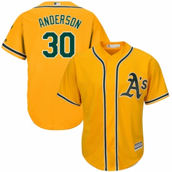 >Youth Majestic Oakland Athletics #30 Brett Anderson Authentic Gold Alternate 2 Cool Base MLB Jersey