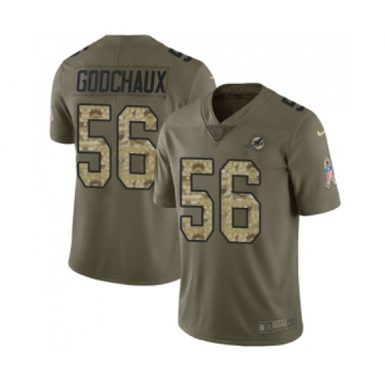 Youth Miami Dolphins #56 Davon Godchaux Limited Olive Camo 2017 Salute to Service Football Jersey