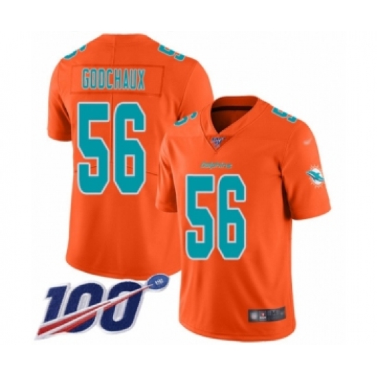 >Youth Miami Dolphins #56 Davon Godchaux Limited Orange Inverted Legend 100th Season Football Jersey