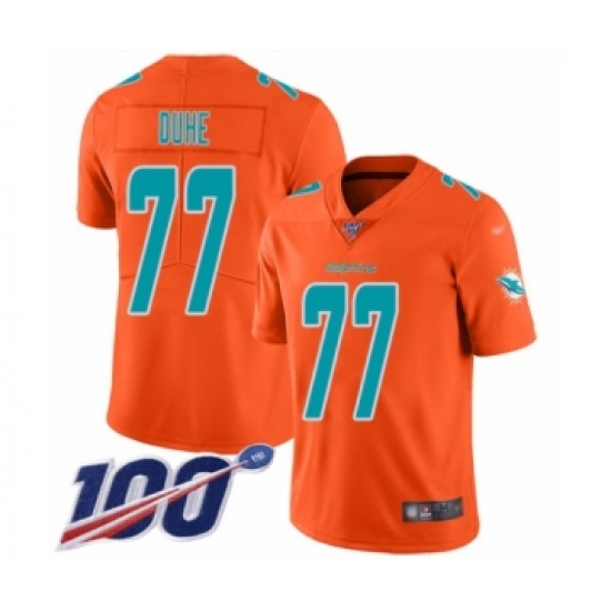 >Youth Miami Dolphins #77 Adam Joseph Duhe Limited Orange Inverted Legend 100th Season Football Jersey