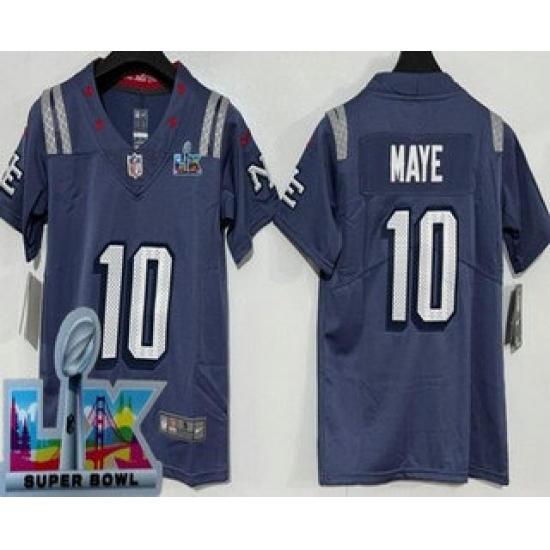 Men's New England Patriots #10 Drake Maye White 2025 2026 Super Bowl LX F U S E Stitched Jersey