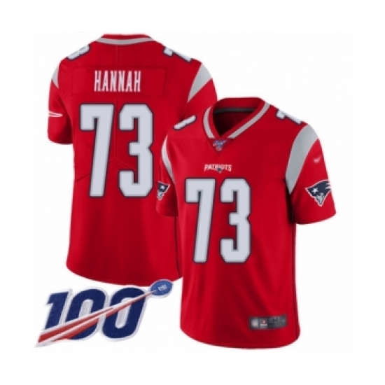 >Youth New England Patriots #73 John Hannah Limited Red Inverted Legend 100th Season Football Jersey