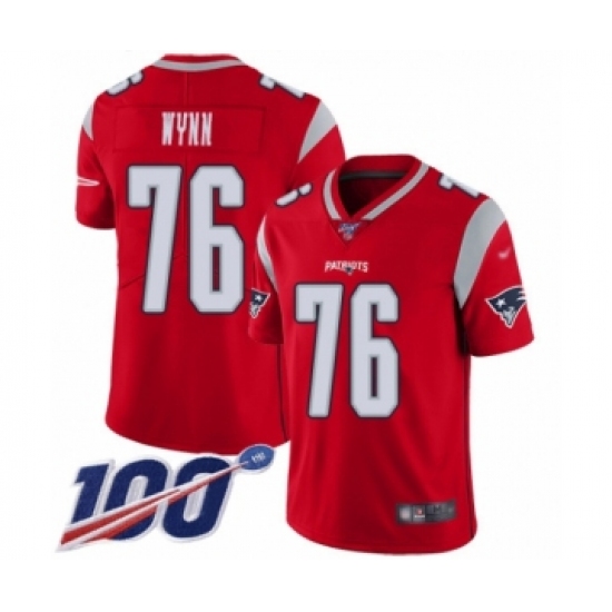 >Youth New England Patriots #76 Isaiah Wynn Limited Red Inverted Legend 100th Season Football Jersey