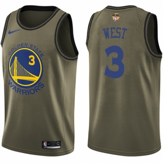 >Youth Nike Golden State Warriors #3 David West Swingman Green Salute to Service 2018 NBA Finals Bound NBA Jersey