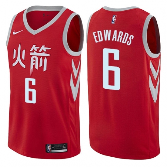 Men's Nike Houston Rockets #6 Vincent Edwards Swingman Red NBA Jersey - 2018 19 City Edition