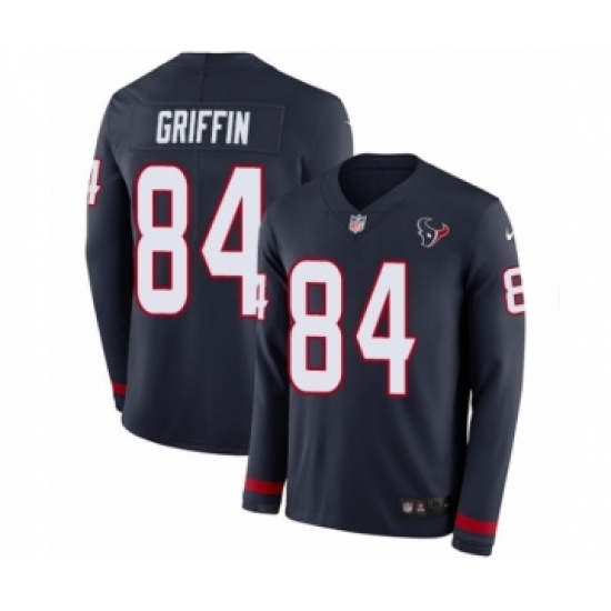 Youth Nike Houston Texans #84 Ryan Griffin Limited Navy Blue Therma Long Sleeve NFL Jersey