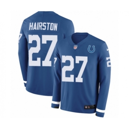 >Youth Nike Indianapolis Colts #27 Nate Hairston Limited Blue Therma Long Sleeve NFL Jersey